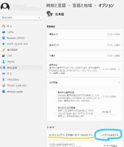 4.”キーボード”の”レイアウトを変更する”をクリック